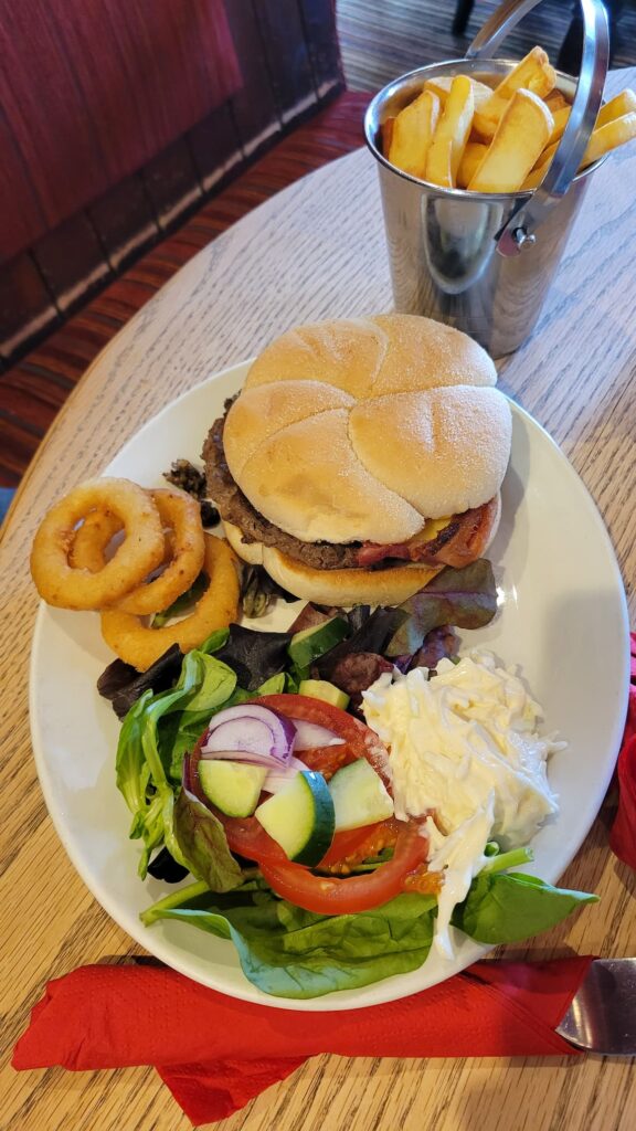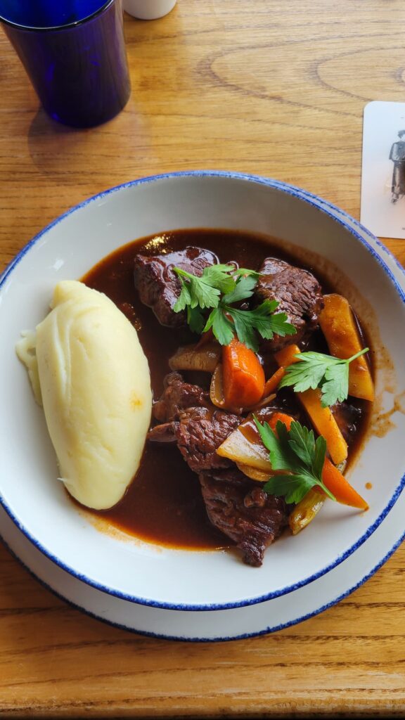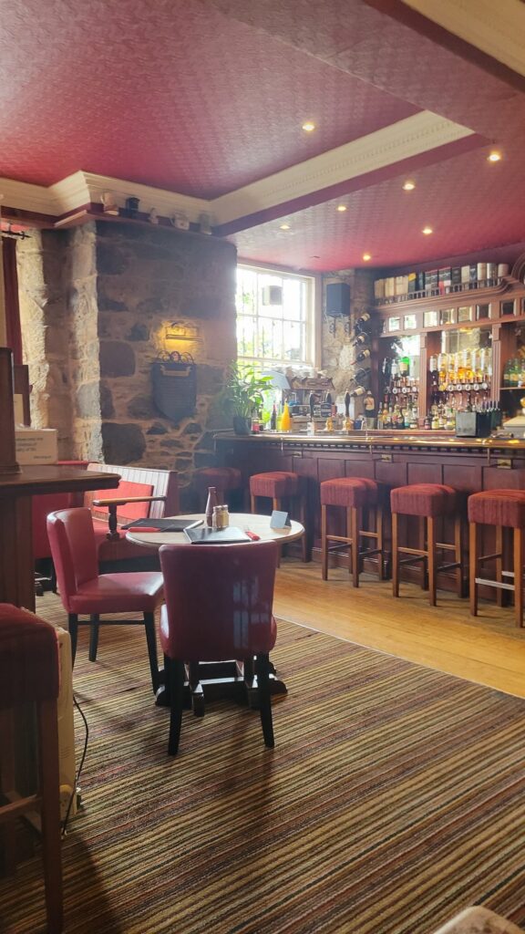 Juste à côté du château, déjeuner au The Portcullis, sans hésitation le meilleur restaurant du séjour. Pour Monsieur : un burger au haggis, audacieux mais validé. Pour moi : poulet à la garlic sauce. Et en dessert : un cheesecake coco-ananas absolument divin.