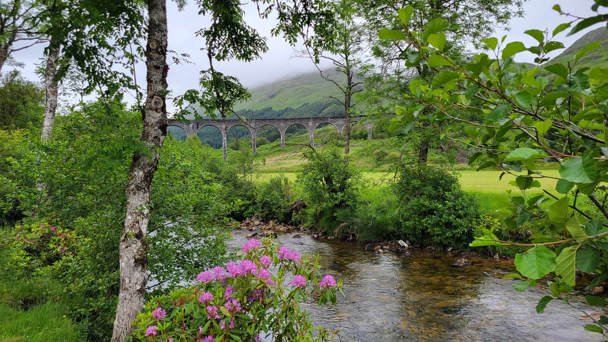 Nous poursuivons ensuite vers l’un des lieux les plus mythiques pour les fans de cinéma : le Viaduc de Glenfinnan. Construit à la fin du XIXᵉ siècle, ce viaduc ferroviaire est devenu mondialement célèbre grâce à la saga Harry Potter, puisqu’il apparaît lors des passages du Poudlard Express. Un moment magique, presque irréel, avec la vapeur qui s’élève au-dessus des arches, dans un décor typiquement highlandais.