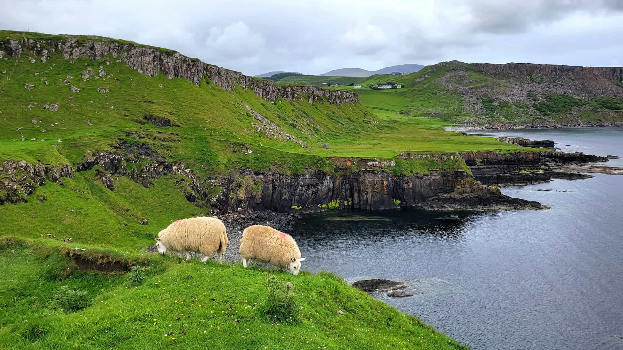 La randonnée dure environ 2 heures et nous fait traverser falaises vertigineuses, landes marécageuses et pâturages habités par les moutons écossais. L’ambiance est sauvage, authentique, avec le vent qui souffle et le panorama qui s’étend jusqu’à la mer.