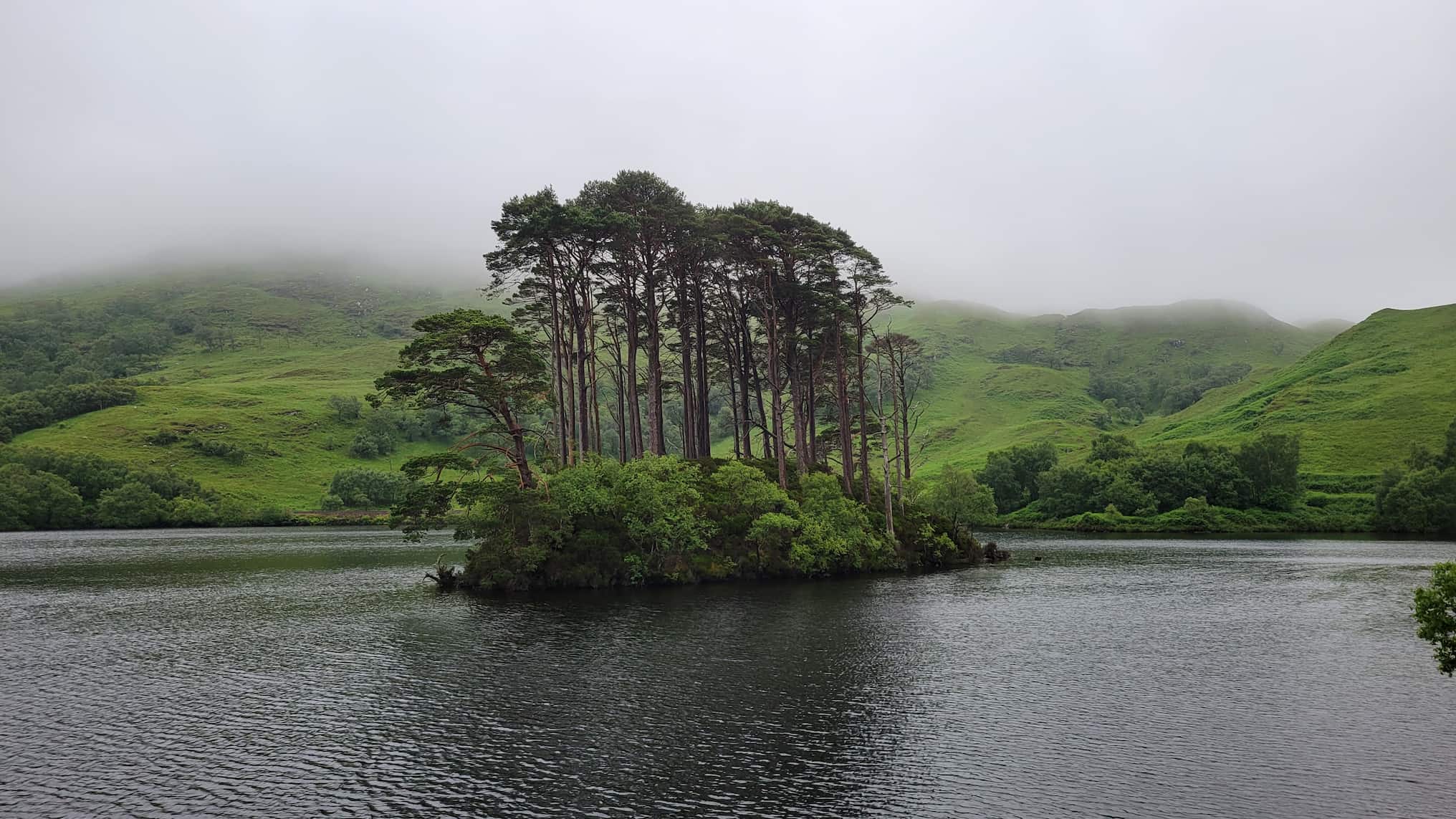 Dernière découverte de la journée : Eilean na Moine, aussi surnommée la tombe de Dumbledore dans les films Harry Potter. Ce petit îlot rocheux, situé sur un loch entouré de montagnes, a servi de décor à la scène de l’enterrement de Dumbledore. L’ambiance était ce jour-là brumeuse et mystérieuse, rendant le lieu encore plus beau et presque irréel. Même sans être fan de la saga, l’endroit dégage une atmosphère incroyablement paisible et mélancolique, renforcée par le silence et la nature omniprésente.