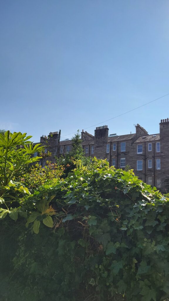 Nous rendons ensuite la Mazda chez l’agence de location et prenons la direction de notre dernier Airbnb à Édimbourg. Le logement possède une petite terrasse charmante, parfaite pour profiter du soleil écossais, une vraie bénédiction vu la chaleur inattendue !