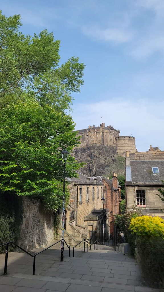 Nous poursuivons notre balade dans la vieille ville jusqu’à The Vennel, un passage discret qui offre l’un des plus beaux points de vue sur le Château d’Édimbourg. Clairement un spot photo à ne pas manquer !